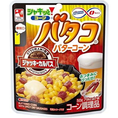 原材料を見ると、コーンはアメリカ産で遺伝子組換え混入防止管理済みとのことで、品質や安全性への配慮も感じられます。ジャッキーカルパスはおなじみのおつまみですが、それがカットされてコーンにミックスされていることで、肉の旨みやスパイス感がバターコーンによく合いそうです。また、レンジ対応パウチなので、手軽に温めてすぐに食べられるのは忙しい日にもありがたいポイントです。