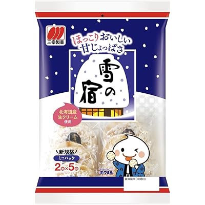「三幸製菓 雪の宿サラダ 10枚」は、おせんべいの定番「雪の宿」シリーズのひとつとして、とても親しみやすい印象を受けました。まず、商品の説明からも分かるとおり、ソフトで口どけの良いおせんべい生地に、さっぱりとした塩味と北海道産生クリームを使ったマイルドな甘さのミルククリームが組み合わされている点が特徴的ですね。甘じょっぱい味わいが想像でき、和菓子の中でも幅広い年齢層に好まれそうだと感じました。