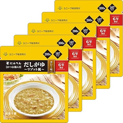 ユニーク総合防災 にんべん かつお節入り だしがゆ~リゾット風~(カレー) 200g ×5個