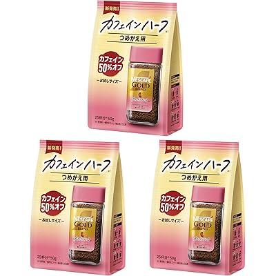 ネスカフェ ゴールドブレンド カフェインハーフ 50g×3袋,75杯分,詰め替え用,ブラック,レギュラー ソリュブル コーヒー