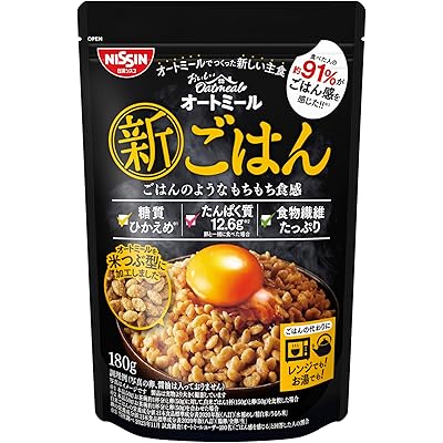 日清シスコのおいしいオートミール 新ごはんは、従来のオートミールとは一線を画したユニークな商品だと感じました。これまでオートミールといえばフレーク状や粒状で、主にミルクやヨーグルトに混ぜて食べるイメージが強かったのですが、本商品は「米つぶ型」に加工されていて、見た目も食感もごはんに近いという点が非常に新鮮です。もちもちした食感を追求していることから、日本人に馴染みやすい主食の代替として、幅広い食事シーンで活躍しそうです。