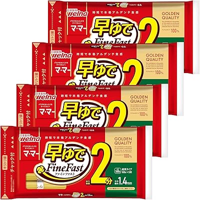 「マ・マー 早ゆで2分スパゲティ1.4mm チャック付結束タイプ 500g×4個」の商品説明を読んで、非常に便利で工夫された商品だという印象を受けました。まず、特筆すべきはゆで時間がわずか2分という手軽さです。毎日の忙しい食事準備の中で、パスタをあっという間に調理できる点は、忙しい方や時間を有効に使いたい方にとって大きな魅力だと思います。「早ゆで」と聞くと、どうしても食感や味に不安を感じることもありますが、アルデンテ感のある味わいを維持しているという点も、メーカー独自の技術力を感じさせます。