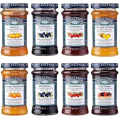 サン・ダルフォーアアソートセット(8本入) ST-8Pは、フランス・ボルドー産のフルーツスプレッドを詰め合わせたギフトにもぴったりのセットです。パッケージの説明からも分かる通り、砂糖を使わずにフルーツ果汁で甘みを加えているのが最大の特徴で、健康志向の方や素材本来の味わいを大切にしたい方にとって魅力的だと感じます。