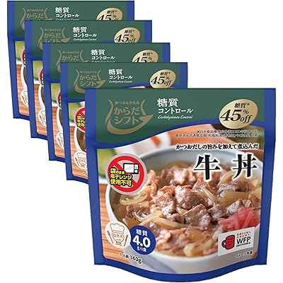 「からだシフト 糖質コントロール 1人前 牛丼 140g ×5」は、糖質を抑えたい方にぴったりのレトルト食品という印象を受けました。一般的な牛丼は甘めのタレやご飯の糖質でカロリーや糖質が気になりがちですが、この商品は糖質コントロールを意識して作られている点が魅力的です。商品説明を見ると、牛肉や玉ねぎといった定番の材料に加えて、しらたきが使われているため、かさ増ししつつ糖質を控える工夫がされているのだと感じました。