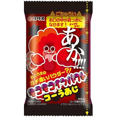 「コリス モコモコインパクト コーラ味 4g×30個」は、パーティーや友達同士でのちょっとした遊び心をくすぐるユニークな粉末菓子のようです。特に「口を開ければ真っ赤に染まる」という点は、見た目にもインパクトがあり、盛り上がるシチュエーションを想像させます。最近はSNSなどでも、こうした“映える”お菓子が人気なので、若い世代を中心に注目されそうだと感じました。