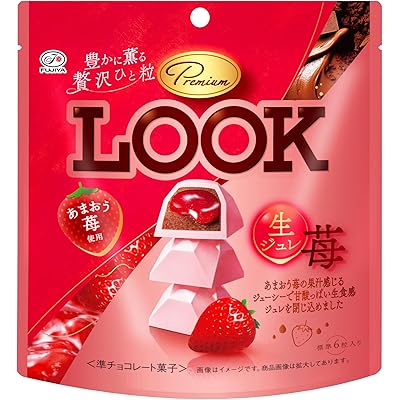 「不二家 プレミアムルック(生ジュレ苺)パウチ」は、いちごの生ジュレが入った贅沢なチョコレート菓子として紹介されています。まず、商品名からも分かる通り、「プレミアム」とあるだけに、通常のルックチョコレートよりもワンランク上の特別感や高級感を意識した作りになっているという印象を受けます。また、「パウチ」タイプで個包装になっていることから、手軽に持ち運べて、好きなときに少しずつ楽しめるのも魅力的です。