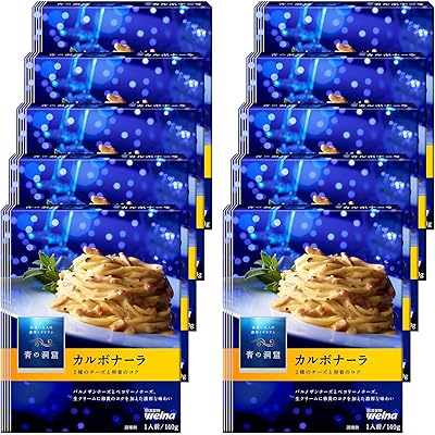 「青の洞窟 カルボナーラ 140g×10個」は、本格的なカルボナーラソースを手軽に楽しめる商品だという印象を受けました。商品の説明によると、パルメザンチーズやペコリーノチーズ、生クリーム、卵黄といった、イタリア伝統のカルボナーラに欠かせない素材がしっかりと使われている点が魅力的です。特にペコリーノチーズは、現地イタリアのレシピにもよく登場するので、こだわりが感じられます。