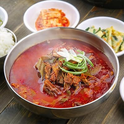原材料にもこだわりが感じられ、牛肉だけでなく、ごまや唐辛子、にんにく、生姜など、韓国料理らしい風味の素材が豊富に使われています。これらの組み合わせによって、複雑で奥深い味わいが実現されていそうです。加えて、さつまいものつるや平茸といった普段あまり見かけない具材が入っているのもユニークで、他のユッケジャンスープとは一線を画している印象を受けます。