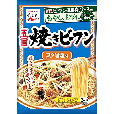 「永谷園 五目焼きビーフン コク旨塩味 161g ×5個」という商品は、手軽さと本格的な味わいの両立を目指した惣菜の素だという印象を持ちました。フライパンひとつで、もやしと豚肉を用意するだけでたった7分ほどでボリューム満点のおかずが完成するという点は、忙しい日々を送る家庭や一人暮らしの方にとって非常に魅力的です。ビーフンという米粉を使った麺は、食感が良くお腹にもしっかりたまりそうなので、ランチや夕食のメインにもぴったりだと思います。