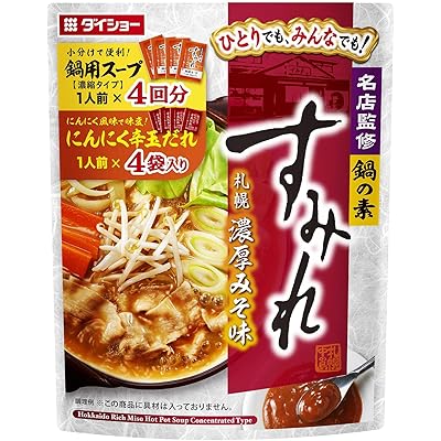 「ダイショー 名店監修鍋の素 すみれ札幌濃厚みそ味」は、札幌の有名ラーメン店「すみれ」監修というだけで、ラーメン好きや鍋好きには非常に魅力的な商品だと感じます。特に「濃厚みそ味」の鍋スープという点に惹かれます。札幌ラーメンの特徴であるコク深い味噌の旨味に豚骨のコクが加わっているという説明から、濃厚でありながらも奥行きのある味わいを期待させます。