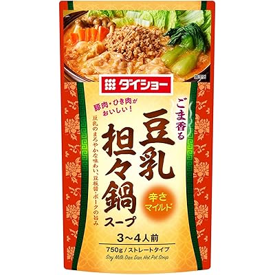 「ダイショー 豆乳担々鍋スープ 5袋セット」の商品説明を読んだ印象として、まず豆乳をベースにしている点に魅力を感じました。豆乳はヘルシーなイメージが強く、まろやかなコクをプラスしてくれるため、担々鍋の辛みや旨みを絶妙に引き立てる役割を果たしそうです。また、味噌や豆板醤、ポークエキスなど、それぞれの素材のうま味がしっかりと感じられるよう工夫されていることもポイントだと思いました。