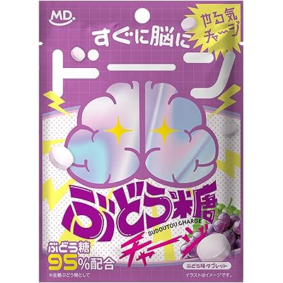 「MD ぶどう糖チャージ 小袋タイプ 27g×10袋」は、勉強やデスクワークなどの頭を使うシーンや、作業中の間食として活用できるグレープ味のタブレットです。商品の説明から感じる印象として、まず最も大きな特徴は、ぶどう糖が95%も配合されている点です。ぶどう糖は脳のエネルギー源と言われており、集中力を維持したい場面や疲れているときに手軽にエネルギーチャージできるのは非常に便利だと感じます。また、小袋タイプなので、持ち運びやすく、外出先や職場、自宅などさまざまなシーンで利用できそうです。