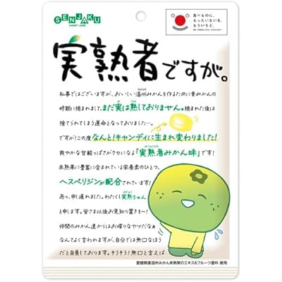 この「扇雀飴本舗 実熟者ですが。 65g×10袋」は、非常にユニークなコンセプトのキャンディだと感じました。特に、「アップサイクル」というキーワードが目をひきます。本来であれば廃棄されてしまう温州みかんの未熟果をエキスに加工し、キャンディとして新たな価値を生み出している点に、環境や資源を大切にする企業の姿勢がうかがえます。食品ロス削減への貢献にもつながっている点は、現代社会でますます重要視されているサステナビリティの観点からも好印象です。