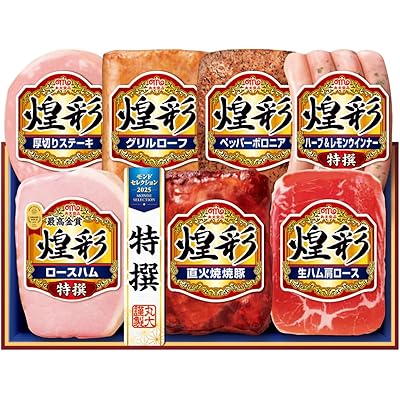 「丸大食品 煌彩ギフト」は、贈答用や特別な日の食卓を彩るのにぴったりなハム・ソーセージの詰合せセットだと感じました。まず目を引くのは、モンドセレクション最高金賞を受賞したというロースハムを含む、全7種が一箱にぎゅっと詰まっているという豪華さです。内容も、ロースハムや焼豚、グリルローフ、ペッパーボロニア、生ハムなど、バラエティーに富んでおり、食べ比べやアレンジも楽しめそうです。