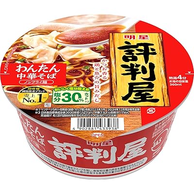 ![明星 評判屋 わんたん中華そば[12個入、カップ麺、ラーメン、即席めん減塩訴求ブランド売上№1※1、塩分30%カット※2、かつお香る鶏と魚介の旨みだし、67g]](https://m.media-amazon.com/images/I/819SuNCodSL._AC_AA400_.jpg)