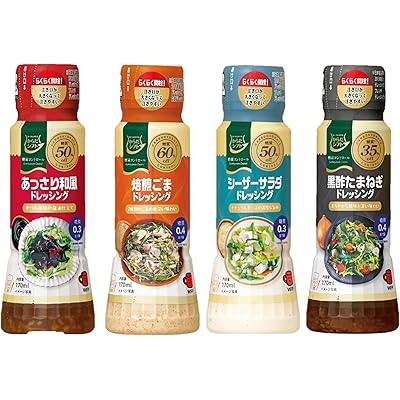 4種類それぞれの味にも個性があり、「あっさり和風」「黒酢たまねぎ」「シーザーサラダ」「焙煎胡麻」と、好みや食材に合わせた使い分けが楽しめそうです。和風や黒酢たまねぎはさっぱりと、シーザーや胡麻は濃厚でコクのある仕上がりが想像でき、サラダだけでなく、温野菜や肉・魚料理のソースとしても応用できそうです。原材料を見ると、人工甘味料のスクラロースやステビアを使って糖質を抑えているのも特徴的です。糖質制限中でも甘みや深みを感じられる工夫がされている印象です。