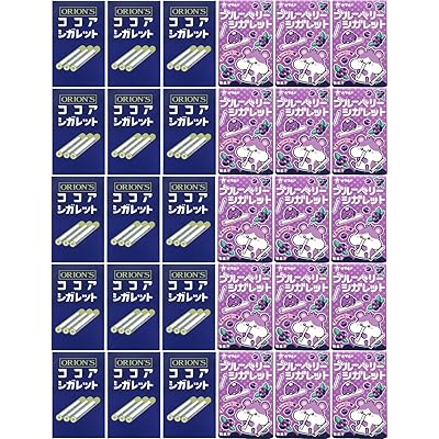 オリオンのシガレット2種セット(ココア・ブルーベリー 各15個)は、そのユニークなネーミングと昔ながらの駄菓子で親しまれているブランドならではの懐かしさを感じさせてくれる商品です。まず「シガレット」という名前が印象的ですが、もちろんお菓子であり、ユーモラスなパッケージとともに子供の頃の思い出を思い起こさせます。