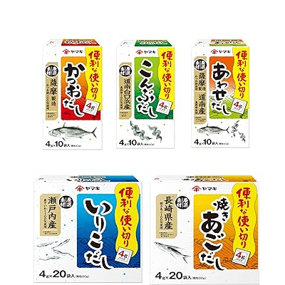 「ヤマキ 産地限定 だしシリーズ 5種 【セット買い】」は、日本各地の素材を贅沢に使っただしの素をセットで楽しめる商品という印象を受けました。薩摩産かつお節や道南白口浜産の真昆布、瀬戸内産いりこ、長崎産焼きあごなど、各地の特色ある原材料が使われており、素材の産地にこだわった本格的な味わいを自宅で気軽に楽しめそうです。それぞれ原材料の配合もシンプルで、主に風味原料、塩、ぶどう糖、調味料といった構成なので、だしの風味が引き立つ工夫が感じられます。