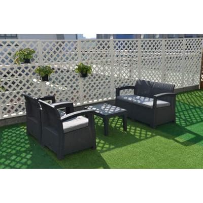 この商品は、ガーデンファニチャー 4点セットで、ラタン調のデザインが特徴的な商品です。その美しいデザインは、お庭をリゾート風に演出する能力を持っていると感じました。また、樹脂製であるため耐久性があり、長く使用することが可能だと考えます。