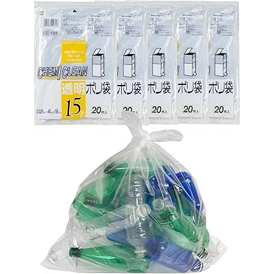 この商品は、ケミカルジャパン製のゴミ袋で、100枚(20枚×5セット)入りとなっています。サイズは横45cm、縦55cm、厚み0.025mmで、15Lの容量があります。このサイズは一般的なお部屋のゴミ箱にピッタリと合うように設計されています。また、このゴミ袋は透明なので、中身が一目でわかるという特徴があります。これは分別が細かいゴミの場合に非常に便利であると感じました。