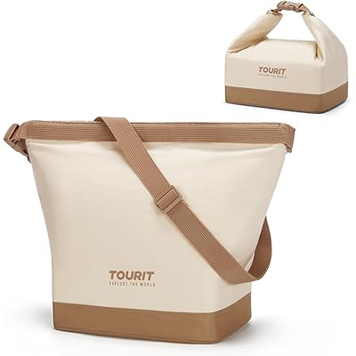 TOURIT ランチバッグ 5-10L 保冷バッグ 小さめ 折り畳み式 スケーラブル ベルクロ開閉式 防水加工 通勤 通学 ベージュ