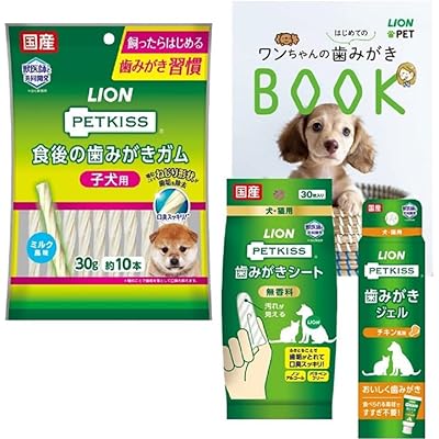 ライオン 犬の歯磨きはじめてセット ペットキッス PETKISS ワンちゃんの歯みがきはじめてセット 食後の歯みがきガム 子犬用+歯みがきチキン風味+歯みがきシ …