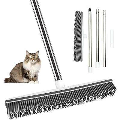 KUERUE シリコン素材 カーペット 用 毛取り ブラシ 低パイルカーペットの毛取り 犬猫の毛リムーバー 水洗い可能 80cm/120cm長さ調節可能 立った …