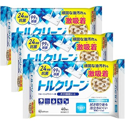 アイリスオーヤマの「フローリングシート ウェット 頑固な油汚れも激吸着」は、手軽に使えるフローリング掃除シートとして非常に魅力的だと感じました。特に、頑固な油汚れまでしっかり落とせるように設計されている点が印象的です。ポリプロピレンの不織布を使用し、油の吸収力や耐久性にこだわっているため、日常的な皮脂汚れや調理中に床に飛び散った油などもサッと拭き取れるのは大きな魅力です。