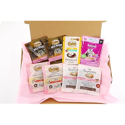また、オリジナルデザインのボックスで届くため、単なるサンプルの詰め合わせ以上の特別感があり、ギフトやお試し用としても喜ばれるのではないでしょうか。内容物としてフードやおやつのほか、歯磨き用用品も含まれているようなので、子猫の健康管理を始める上でもバランスの良いセットだと思います。使用方法についても「適切な量を与える」「用途を守る」といった基本的な注意が記載されており、初めてペットを飼う方にも安心できる配慮が感じられました。