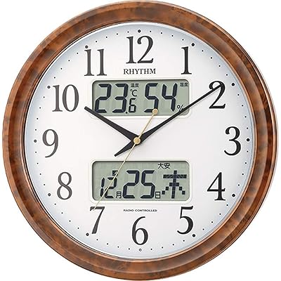 リズム(RHYTHM) 掛け時計 電波時計 アナログ ピュアカレンダーM617SR 暗所 ライト 自動 点灯 カレンダー 温度 ・ 湿度 表示 茶 (木目仕上げ …