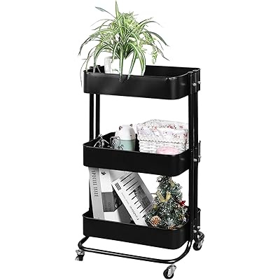 DEWEL キッチンワゴン キャスター付き ベビーワゴン 3段 大容量 耐荷重45KG 長44cm 幅37cm 高85cm 取っ手付き バスケットトローリー メ …