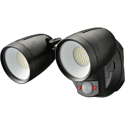 オーム電機monban センサーライト 防犯センサーライト 2灯リチウム充電池式 2000ルーメン 昼光色 人感センサー 高速フラッシュで威嚇 屋外用 セキュリ …