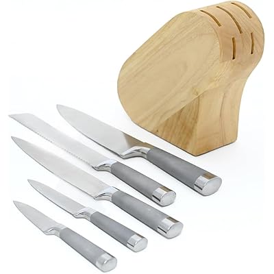Anna Rossi 5点包丁セット 木製収納台付き【牛刀・筋引き・パン切り・ペティナイフ・果物ナイフ】両刃包丁 包丁立て付き 収納台セット 高マンガン炭素鋼