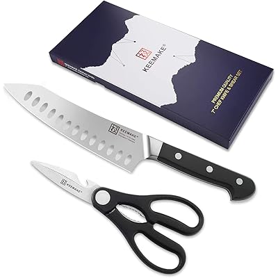 KEEMAKE 三徳包丁 包丁セット 180mm ステンレス 両刃 食洗機対応 万能包丁 野菜 肉 魚 プレゼント 家庭用 キッチンバサミ付き 人気ブログランキング