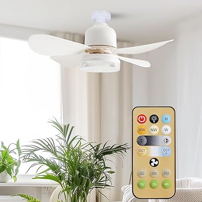 シーリングファンライト リモコン付き E26口金 4枚羽根 30W 無段階調光調色 3段階風量調整 タイマー機能 簡単取り付け 省エネ 工事不要 天井照明 小型 …