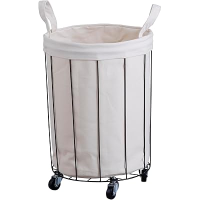 アビテ ランドリーバスケット ワイヤーファブリック・ラウンドカート(アイボリー)Φ34×47cm FD-101-IV