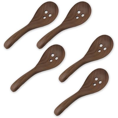 J-kitchens 木製 漆塗り 取り分け レンゲ 穴あき 5本 セット 17×5.8cm