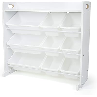 ハンブルクルー(Humble Crew) おもちゃ収納オーガナイザー ホワイト 棚と収納箱9個付き 幅 86×奥行き28 (安定ブレース付きで奥行き41cm)× …