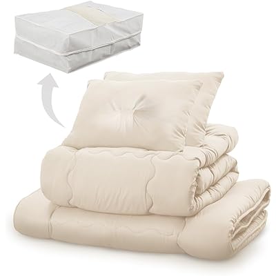 アイリスプラザ すぐ使える&洗える布団5点セット ダブル 抗菌防臭 すっきり収納ケース付き しっとりなめらかピーチスキン加工 (掛け布団 敷布団 枕) アイボリ … 人気ブログランキング