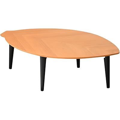 このローテーブルは、まずそのユニークな「木の葉型」のデザインがとても印象的です。一般的な四角や丸のテーブルとは異なり、葉っぱをモチーフにしたシルエットは、お部屋に柔らかなアクセントを加えてくれそうです。ナチュラルでおしゃれな雰囲気を簡単に演出できるため、インテリアにこだわりのある方や、ちょっと他にはないデザインを求めている方には特に魅力的だと感じます。
