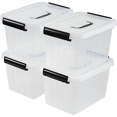 Anbers 4パック 収納ボックス 蓋付き プラスチック 6クォート 透明 収納ボックス 取っ手付き 収納ケース