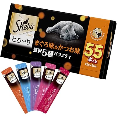 シーバ とろ~り メルティ おやつ 成猫用 まぐろ味&かつお味 贅沢5種バラエティ 12g×55本 キャットフード 猫 Sheba Melty メール便 大容量 …