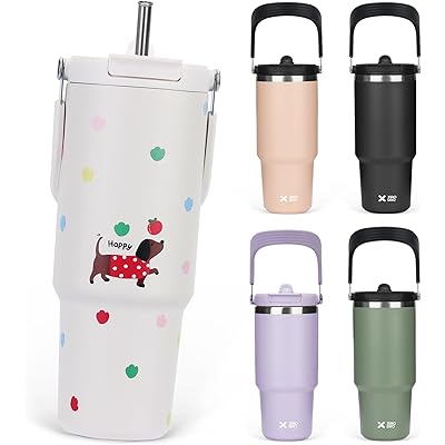 SKIASE タンブラー ストロー付き 900ml 水筒 ウォーターボトル 真空断熱 保温 保冷 ステンレスボトル 広口 直飲み 蓋付き アウトドア 取っ手付き …