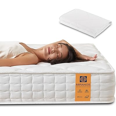 MIRANOSマットレス,180N高反発,体圧分散,通気性, 抗菌防臭,両面寝心地,付きマットレプロテクター,ホワイト(シングル, やや硬い, 厚さ20CM)