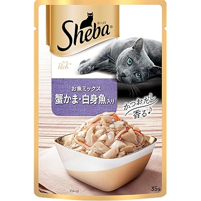 シーバ リッチ ウェット 成猫用 お魚ミックス 蟹かま・白身魚入り 35g×12袋 水分補給 キャットフード 猫 Sheba パウチ