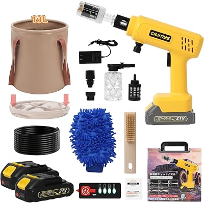 高圧洗浄機【2026年新登場・軽量版・コードレス・9MPa】ハンディ高圧洗浄機、バッテリー2個、残量表示、PSE認証済み、収納ケース付き、13L折りたたみ式水桶 …