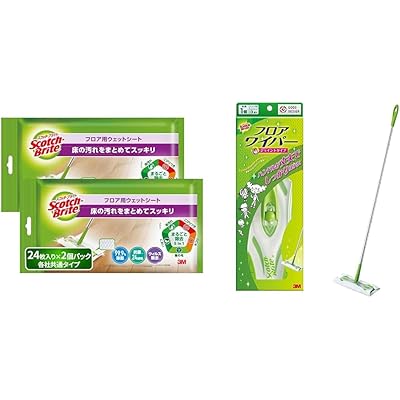 【セット買い】3M ウェットシート フローリング 床 水拭き 掃除 除菌 99.9% 抗菌 24時間 ウイルス除去 24枚×2個 スコッチブライト + 【Ama …