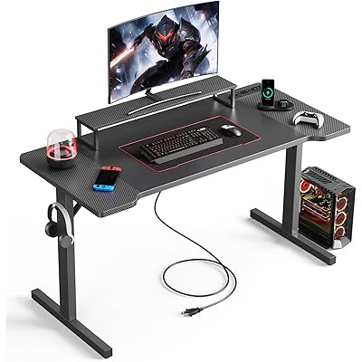 DOMICONのゲーミングデスクの説明を見て、まず感じたのは、シンプルかつスタイリッシュなデザインが非常に魅力的だということです。黒を基調とし、カーボン調の天板が採用されているため、インテリアとしても映えるデスクだという印象を受けました。また、「工」字デザインと補強された三角構造により十分な強度が確保されており、ゲーミング用途はもちろん、重いパソコンやモニターも安心して乗せられそうです。ぐらつきがなく安定しているという点は、長時間の作業でもストレスなく集中できそうな要素です。
