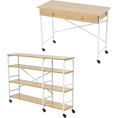 OSJ デスク+ラック キャスター付き 引き出し付き ホワイト