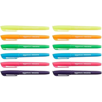 Amazonベーシック 蛍光色インクハイライトペン チゼルチップ アソートカラー 12本入り (× 2)